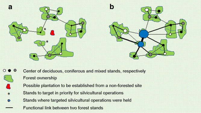 Human impacts on Earth’s ecosystems have greatly intensified in the last decades. This is reflected in unexpected disturbance events, as well as new and increasing socio-economic demands, all of which are affecting the resilience of forest ecosystems worldwide and the provision of important ecosystem services. This Anthropocene era is forcing us to reconsider past and current forest management and silvicultural practices, and search for new ones that are more flexible and better at dealing with the increasing uncertainty brought about by these accelerating and cumulative global changes. Here, we briefly review the focus and limitations of past and current forest management and silvicultural practices mainly as developed in Europe and North America. We then discuss some recent promising concepts, such as managing forests as complex adaptive systems, and approaches based on resilience, functional diversity, assisted migration and multi-species plantations, to propose a novel approach to integrate the functionality of species-traits into a functional complex network approach as a flexible and multi-scale way to manage forests for the Anthropocene. This approach takes into consideration the high level of uncertainty associated with future environmental and societal changes. It relies on the quantification and dynamic monitoring of functional diversity and complex network indices to manage forests as a functional complex network. Using this novel approach, the most efficient forest management and silvicultural practices can be determined, as well as where, at what scale, and at what intensity landscape-scale resistance, resilience and adaptive capacity of forests to global changes can be improved.